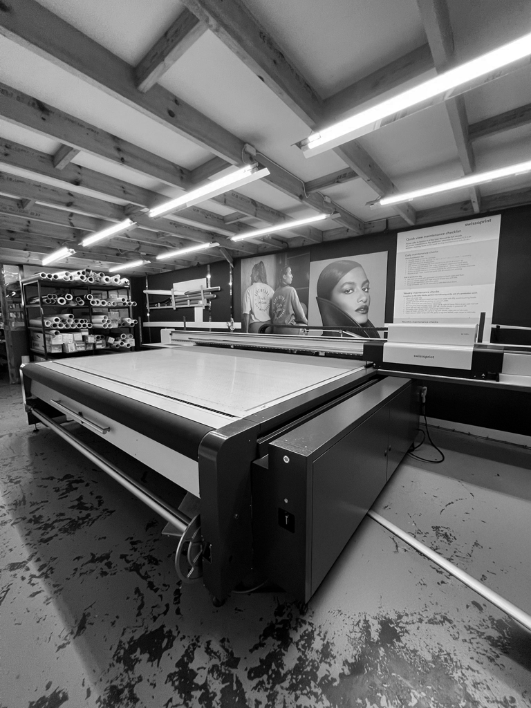 The SwissQprint Nyala 4 is at the heart of our operations. Known for its exceptional versatility and high-precision flatbed printing, it allows us to produce vibrant, detailed images on a wide range of materials. Its standout feature is the ability to create 3D pop-out effects, adding depth and dimension to prints, perfect for luxury retail displays, special events, and bespoke office branding. Whether you're looking to make an impact with tactile, eye-catching designs or need flawless large-format prints, the Nyala 4 delivers industry-leading results.